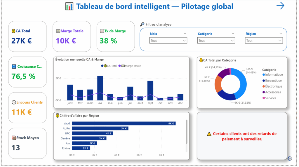- Système d’alertes intelligentes (suivi de seuils, anomalies, etc.).